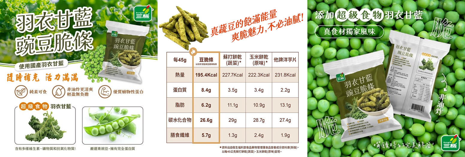 脆條結合了兩大營養天王-羽衣甘藍與青豌豆,不只是零食,還提供多元的生理